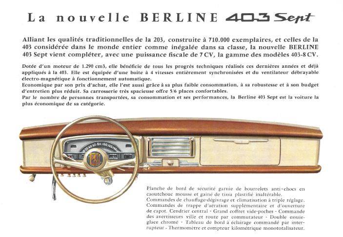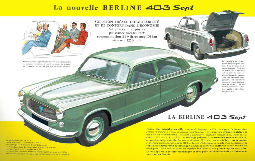 De Peugeot 403 Berline Sept is een typisch voorbeeld van Franse degelijkheid en ingetogen vooruitstrevendheid. De combinatie van rijcomfort, technische innovaties zoals de automatische ventilator en het ruime interieur maken dit model tot een geliefde auto.